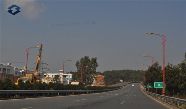 Conical Shape Single Arm Galvanized Red Painting Street Light Steel Pole